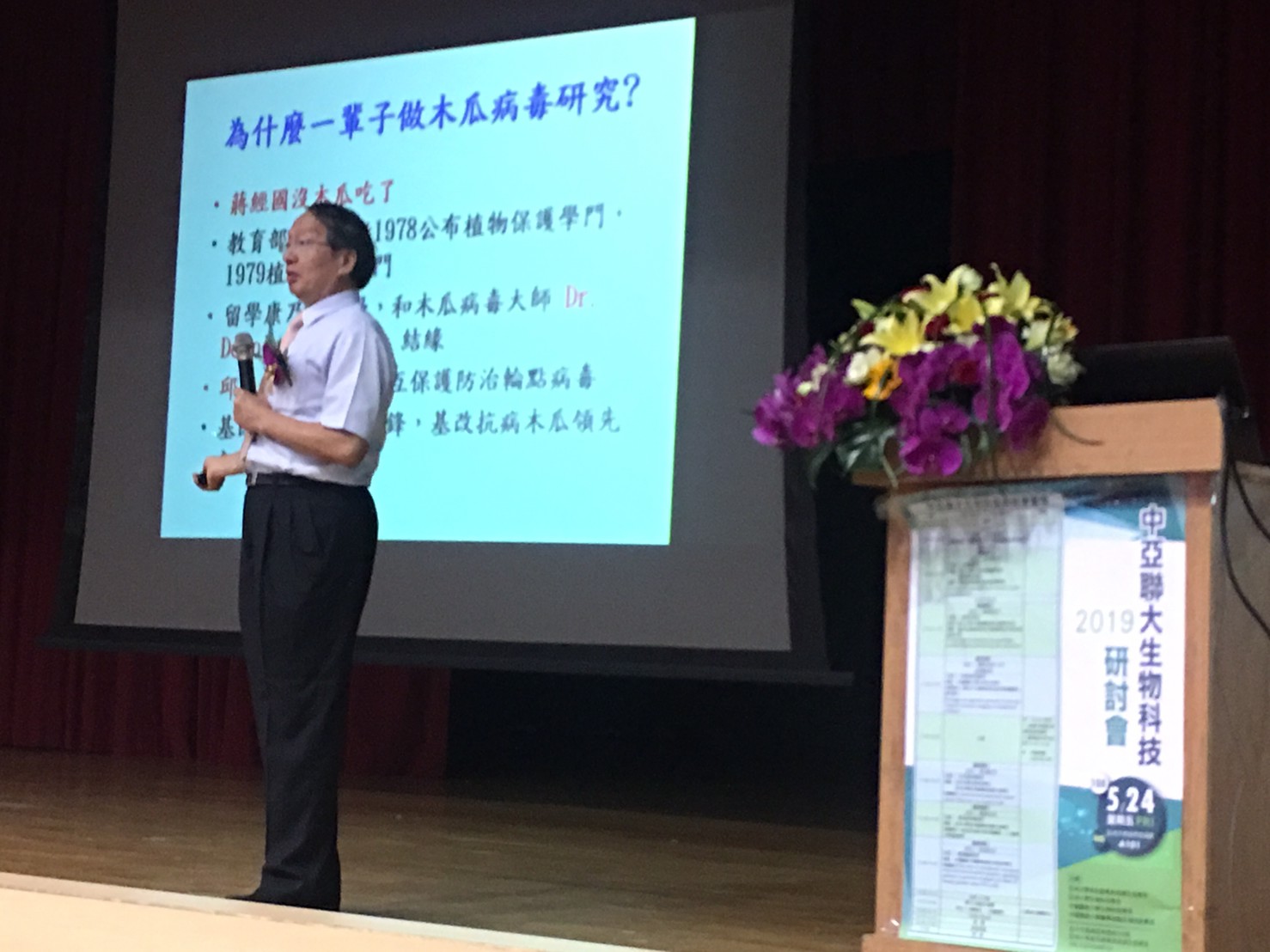 此次研讨会,首先邀请中兴大学讲座教授、国家级讲座教授葉锡东,以「转基因策略防治植物病毒病害」为主题演讲。葉锡东教授是引进植物基因工程解决台湾农业问题的先驱。他在木瓜輪点病毒(PRSV)之研究,利用交互保护及转基因抗性的有效防治策略,斐声国际,已在Plant Disease 和Phytopathology 发表5篇封面文章。