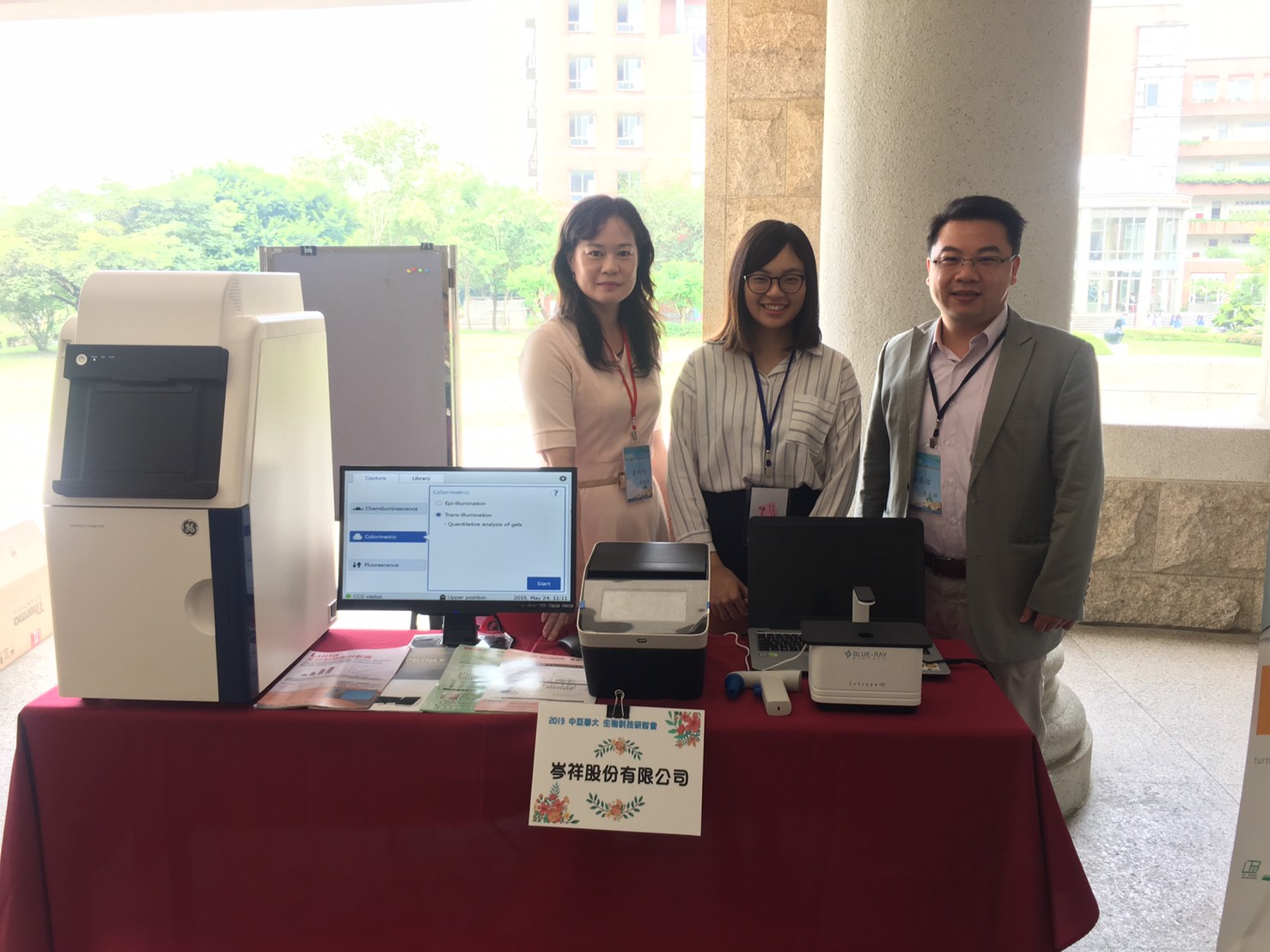 图说:岑祥股份有限公司展示最新的实验室冷光分析仪与分析软件,保健系主任谢承纮(右)致赠感谢状。 |