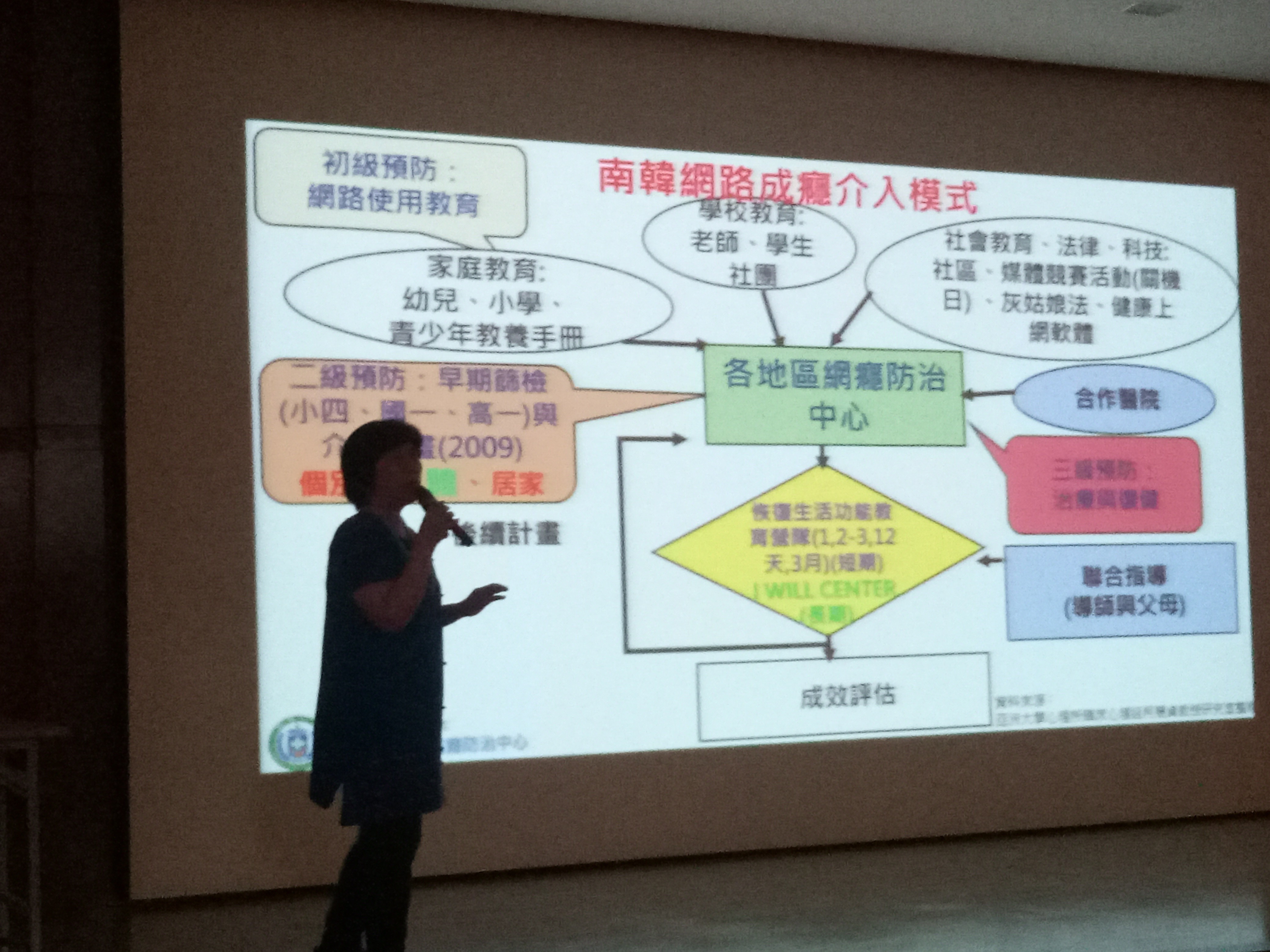 柯慧貞副校長進提到,現行較多工作是有針對網路成癮知能的教師調訓,未來應有配套方案或計畫,鼓勵完訓教師落實校內網癮防治業務,建議醫療專業界應建立專業認證的培育計畫,鼓勵更多醫療專業人員完成進修培訓,並增加民眾求助管道的可近性與品質保證。