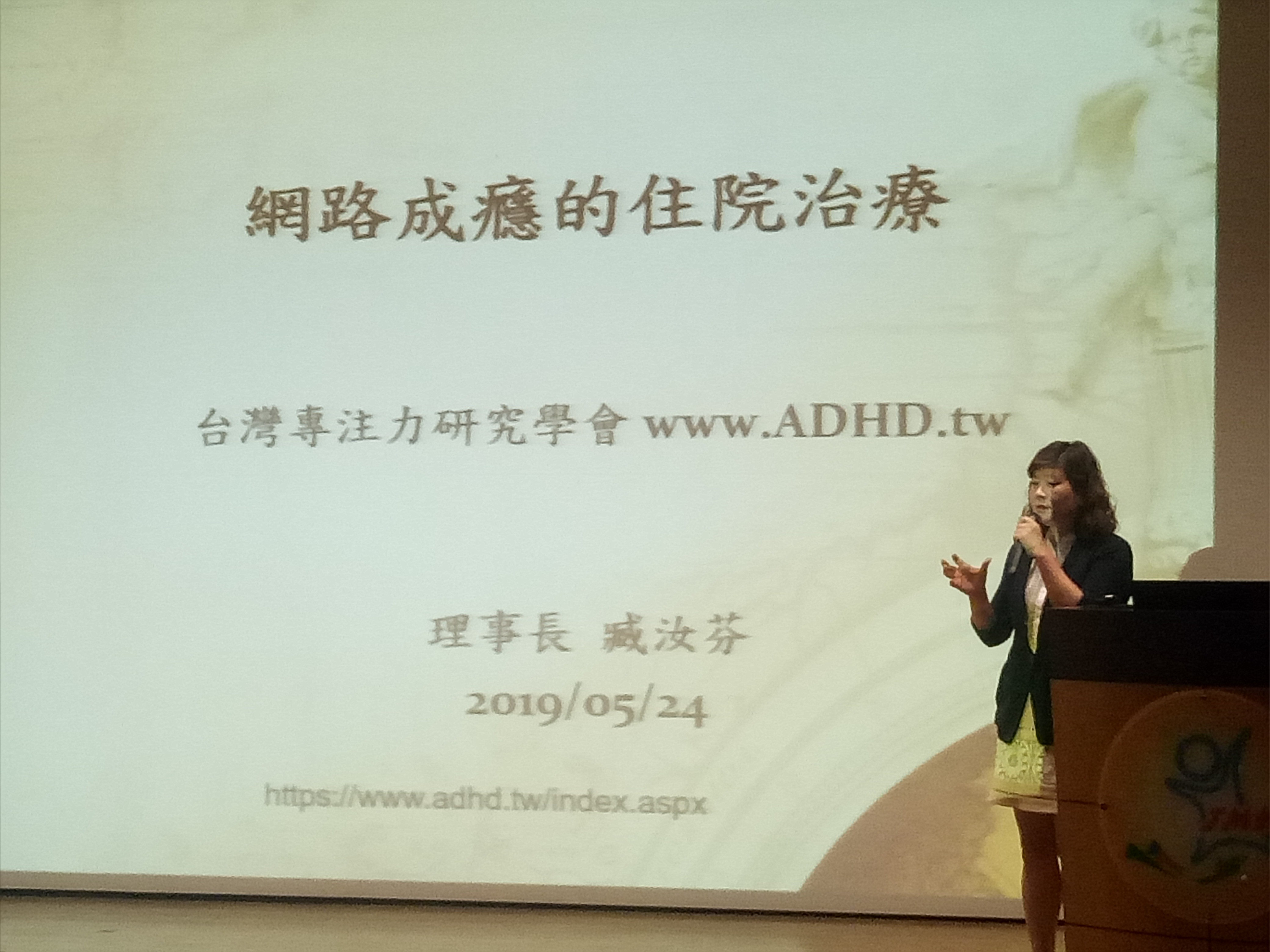 圖說:台灣專注力研究學會臧汝芬理事長分享網路成癮個案的住院治療模式。 |